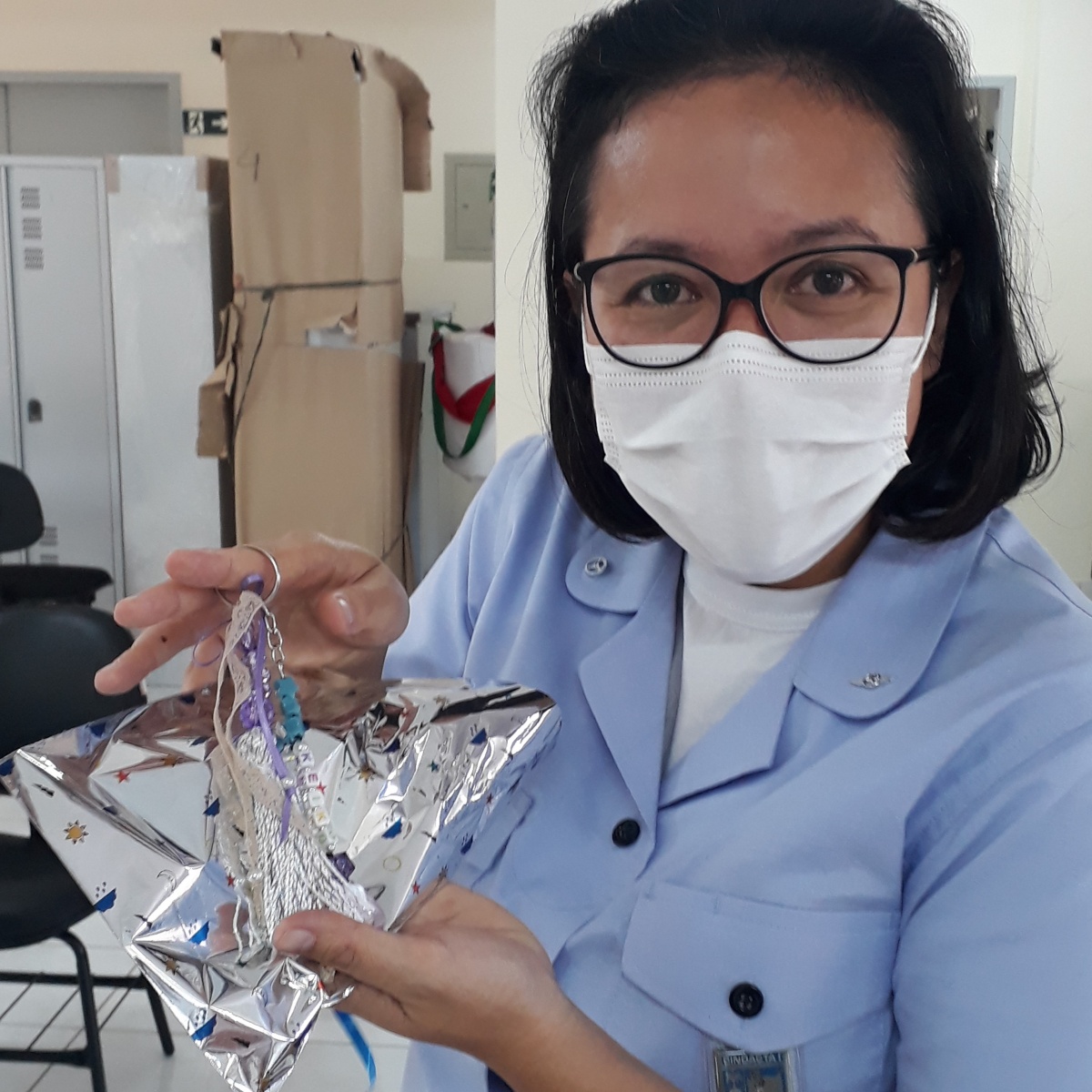 Como em toda visita, nós da Associação, presenteamos os convidados, desta vez, em uma das atividades da Oficina de Artesanato, os usuários do CEVI, preparam um chaveiro personalizado, com a escrita do nome da Tenente, que, com muito alegria recebeu e já se apresentou ansiosa para retornar na Semana Nacional da Pessoa com Deficiência Intelectual e Múltipla que se iniciará no dia 21.